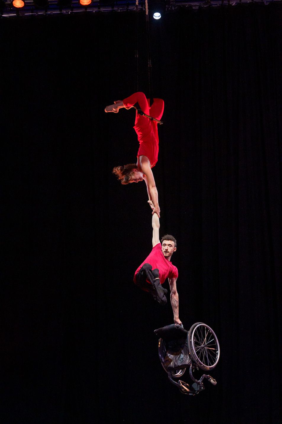 Joyful and playful doubles trapeze act